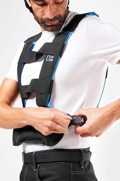 La nostra tecnologia brevettata dell’airbag fa sì che esso sia progettato secondo strutture che lasciano un’ampia apertura utile per il passaggio dell’aria e permettendo così maggior ventilazione e comfort d’uso. All’attivazione, l’airbag si andrà a distendere coprendo interamente il torace e la schiena della persona.