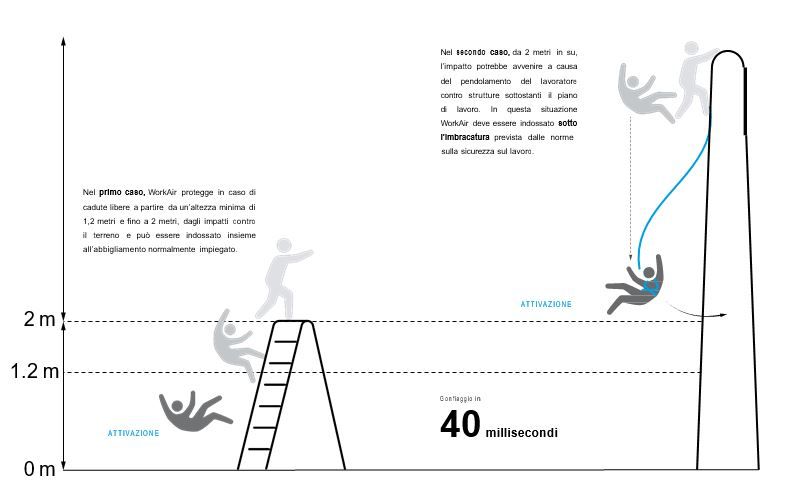 Nel primo caso, WorkAir protegge in caso di cadute libere a partire da un’altezza minima di